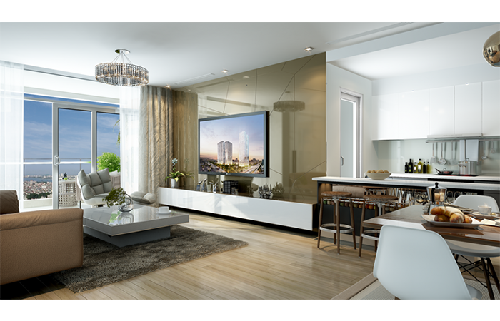 - Khu vực sảnh thương mại tiếp cận tòa nhà theo hướng đường Kim Mã, từ vị trí sảnh thương mại, người sử dụng có thể tiếp cận không gian thương mại, và cũng có thể sang sảnh chung cư. Khu vực sảnh chung cư được bố trí thành 3 sảnh tương ứng với 3 khối nhà ở 3 mặt của khối hỗn hợp.